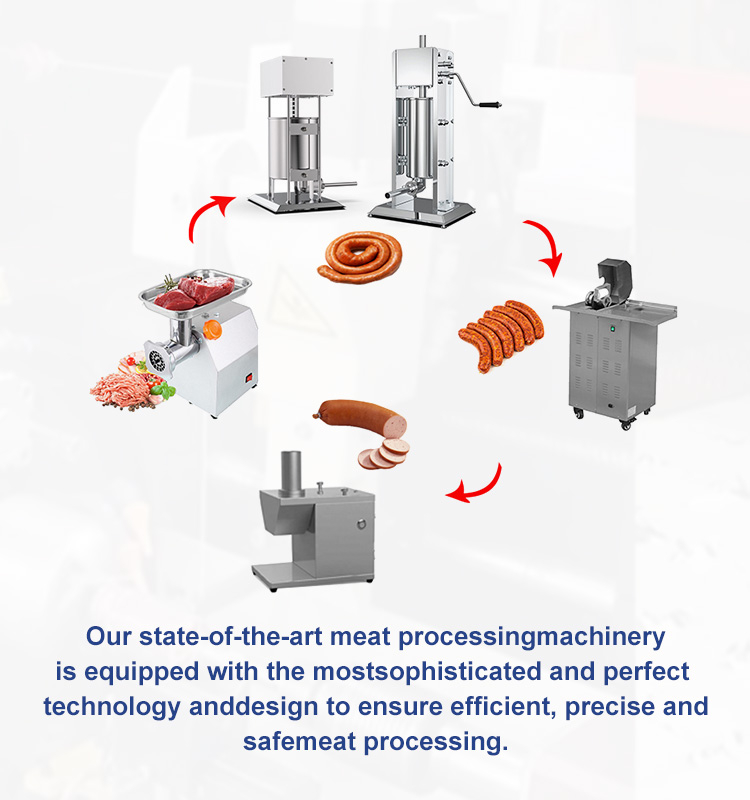 Las plantas de procesamiento de carne son uno de los lugares más utilizados para la maquinaria de procesamiento de carne.Aquí, la maquinaria de procesamiento de carne, como sierras para huesos, rebanadoras y picadoras de carne, se usa ampliamente para sacrificar, pretratar, cortar, cocinar, encurtir, freír, secar, etc. Las plantas de procesamiento de carne también pueden producir una variedad de productos cárnicos, como salchichas de jamón, albóndigas, carne desmenuzada, carne en rodajas, etc., para satisfacer la demanda del mercado.